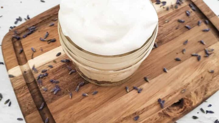 A simple whipped body butter recipe with shea butter, cocoa butter, coconut oil, almond oil, and no cornstarch.