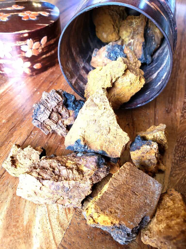 - 6 pieces dried Chaga mushrooms, estimated